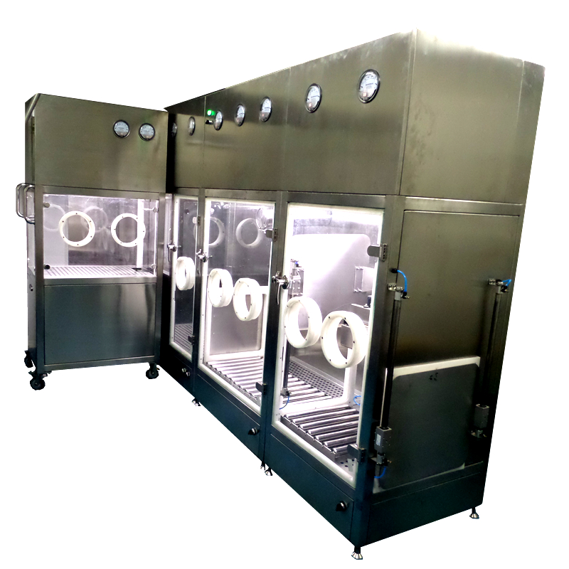 ·操作門采用10mm鋼化玻璃鉸鏈安裝 、隔離門采用費斯托無桿氣缸提升門自動控制,保證每個區(qū)對外和各區(qū)之間均保持10-15Pa壓差,采用美 國 諾斯or Piercan海普龍手套,防止污染和確保藥粉操作環(huán)境。系統(tǒng)配套本公司DM200A6手套在線全自動測漏儀進(jìn)行安全檢漏測試